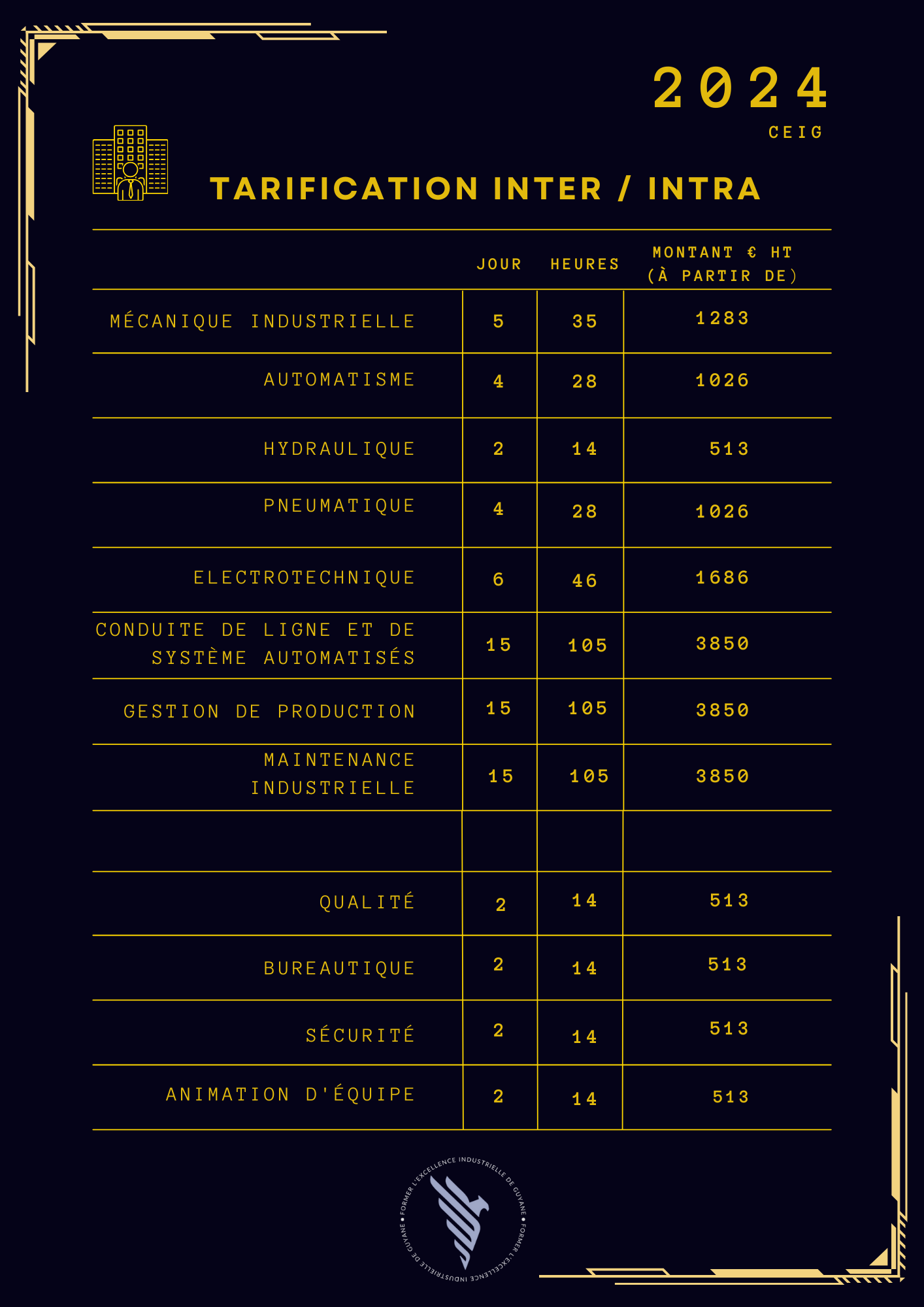 Notre catalogue de formations est spécialement conçu pour répondre aux exigences et ambitions des entreprises de Guyane et d’Outre-mer. Découvrez nos modules de formation inter et intra-entreprise, élaborés pour renforcer vos capacités en mécanique industrielle, automatisme, gestion de production et bien plus encore.
